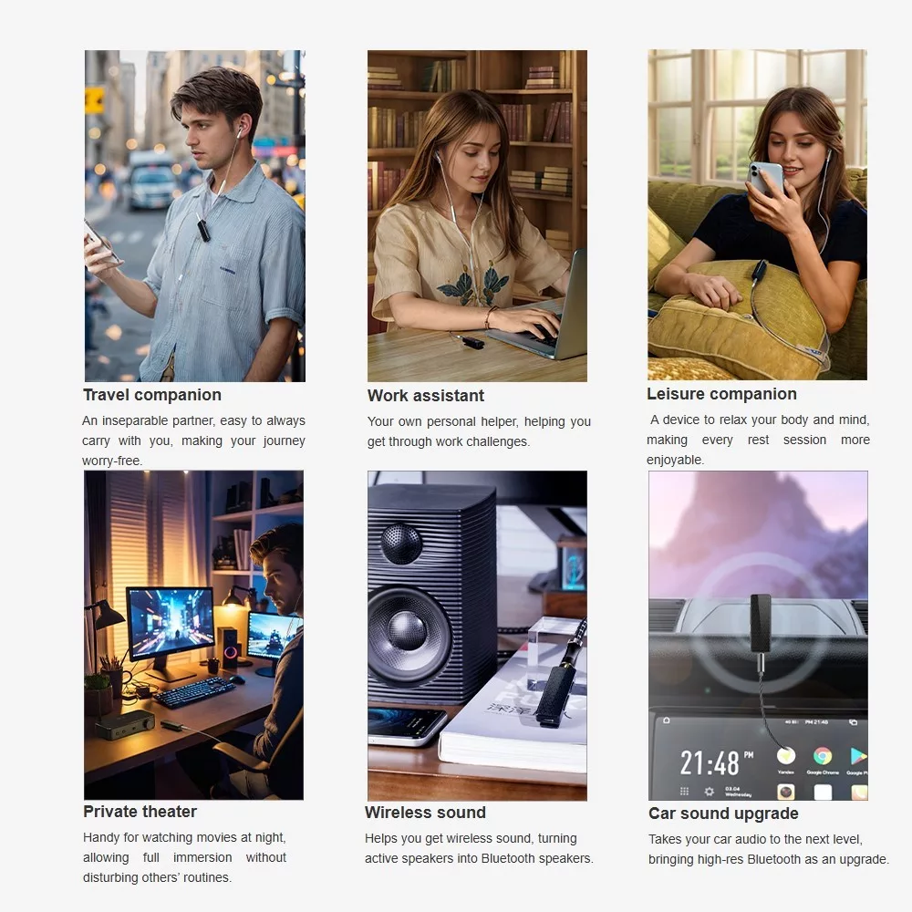 Azoknak is jó szolgálatot tehet a BTR11, akik olyan lejátszót (pl. okostelefont) használnak, amelyen nincs 3.5 mm-es fejhallgató kimenet. Ha Bluetooth képes a lejátszó, akkor a BTR11-gyel adapter kábel nélkül is használhatod a vezetékes fejhallgatódat.