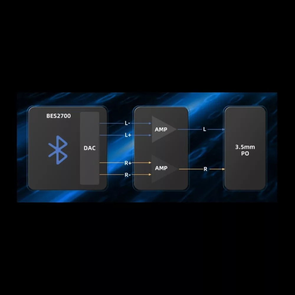 A FiiO BTR11 házában egy BES2700 chip fogadja a Bluetooth jelfolyamot. Az 5.3-s szabványú összeköttetés képes a hagyományos SBC és AAC mellett akár LDAC jel fogadására is.