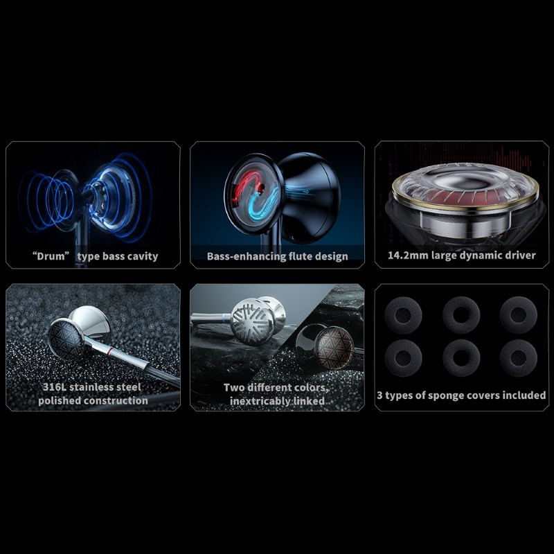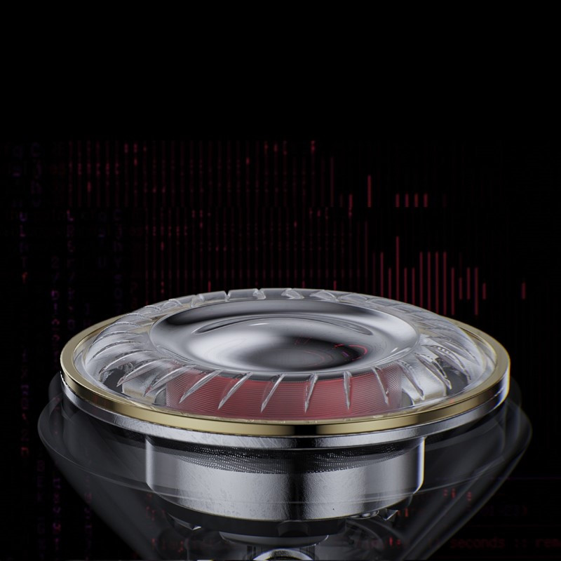 A 316L rozsdamentes acélból készült ház PVD bevonatot kapott. A hangszórón edzett üveg borítás van. Az átlátszó anyag egy ékszer eleganciáját adja a fülhallgatónak.