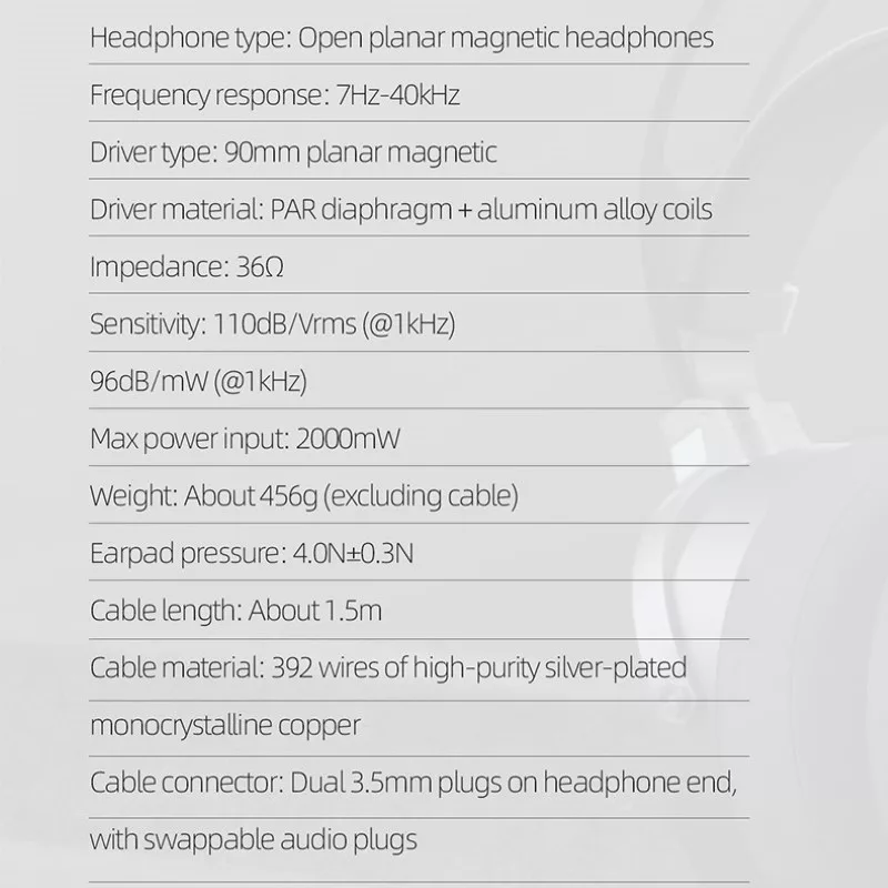 A fejhallgató és a lejátszó között egy másfél méter hosszú, 392 elemi szálból álló, nagy tisztaságú, ezüstözött monokristályos rézkábel viszi át a hangokat.  A kábel egyik végén két darab 3,5 mm-es monó jack dugó csatlakozik a hangszórókhoz, a másik végére pedig a lejátszód kimenetéhez illeszkedő csatlakozót választhatsz. A csomagban található: