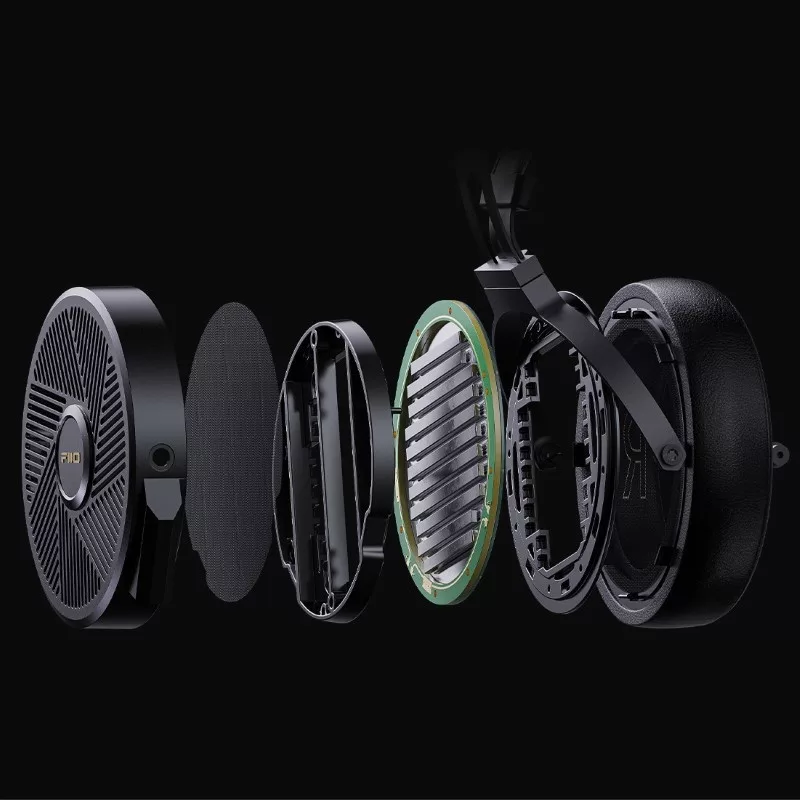 A FIIO FT5-ben oldalanként egy-egy kiemelkedően nagy, 90 mm-es hangkeltő van.