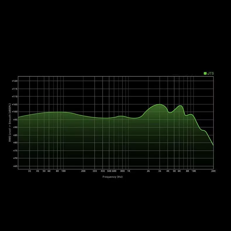 A JT3 meghajtója könnyű TIL csévetesttel és CCAW lengőtekerccsel van felszerelve. A TIL anyag kiváló szilárdsággal és hőállósággal rendelkezik, megakadályozva a tekercs deformálódását a hosszú zenehallgatások során. Az ultra-finom CCAW tekercs nemcsak könnyebbé teszi a membránt, hanem javítja a hatékonyságot és az érzékenységet is, így a meghajtó pontosabban adja vissza a finom részleteket. (A TIL üvegszál és poliimid kompozitja, amely rendkívül vékony és nem fémes, így mentes a mágneses örvényáram-veszteségtől. A CCAW egy rézbevonatú alumínium mag, amely az alumínium könnyűségét a réz kiváló vezetőképességével ötvözi.)