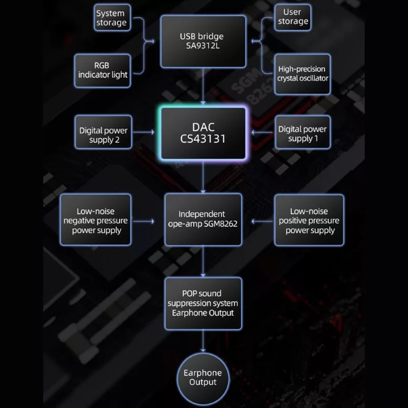 A KA11 lelke egy CS43131 DAC chip, amely maximum 32 bit/384 kHz vagy DSD 256 minőségben alakítja analóg jellé a lejátszóból érkező, digitális jelfolyamot. Az akár 2 x 245 mW kimenő teljesítmény az általános célú, alacsony impedanciás fülhallgatókat megfelelő hangerővel szólaltatja meg.
