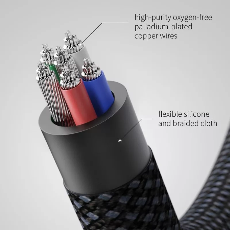 A palládium bevonatú, nagy tisztaságú, oxigénmentes rézből készült kábel zajok és reflexiók nélkül továbbítja a hangot a minőségi csatlakozók között. A rugalmas szilikon és a fonott szövet borítás óvja a KA11-et a fizikai sérülésektől. A kábelt és a csatlakozókat alaposan letesztelték a FiiO laboratóriumában, hogy biztosak lehessünk a KA11 tartósságában.