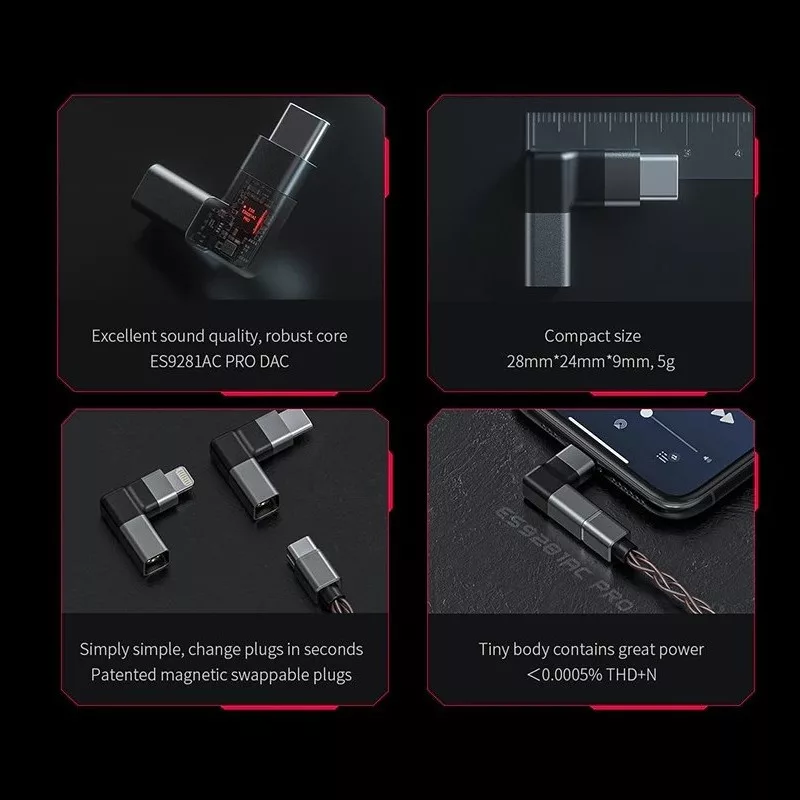 Az LF-LT-ben a digitális-analóg átalakítást az ESS Technology cég ES9281AC Pro típusú DAC chipje végzi. Ez a chip számos feladatért felel: 1. fogadja a Lightning bemeneten érkező jelet, 2. átveszi a telefonba épített D/A átalakító áramkör szerepét, általában jóval tisztább hangzást eredményezve a telefon beépített megoldásánál, 3. a kívánt szintre erősíti az analóg jelet. Az LF-LT 384 kHz/32 bites átalakításra képes, és támogatja a DSD256 minőségben tárolt hanganyagok tiszta és részletező megszólaltatását.