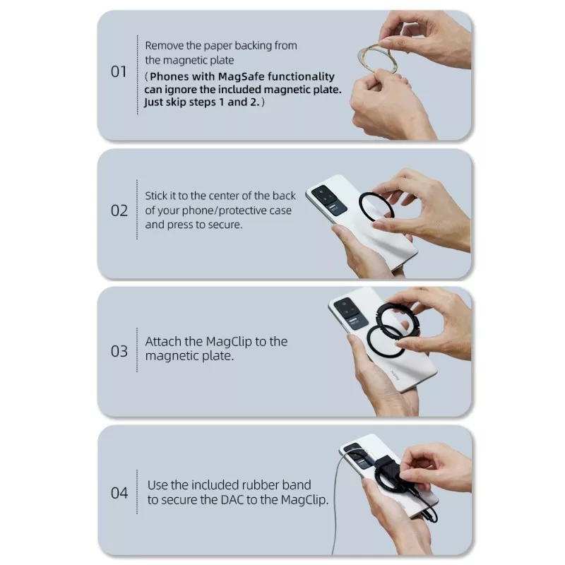 Nincs több vezetéken himbálózó DAC, a telefonhoz csatlakoztatott eszköz elegánsan rögzíthető a MagClip segítségével.