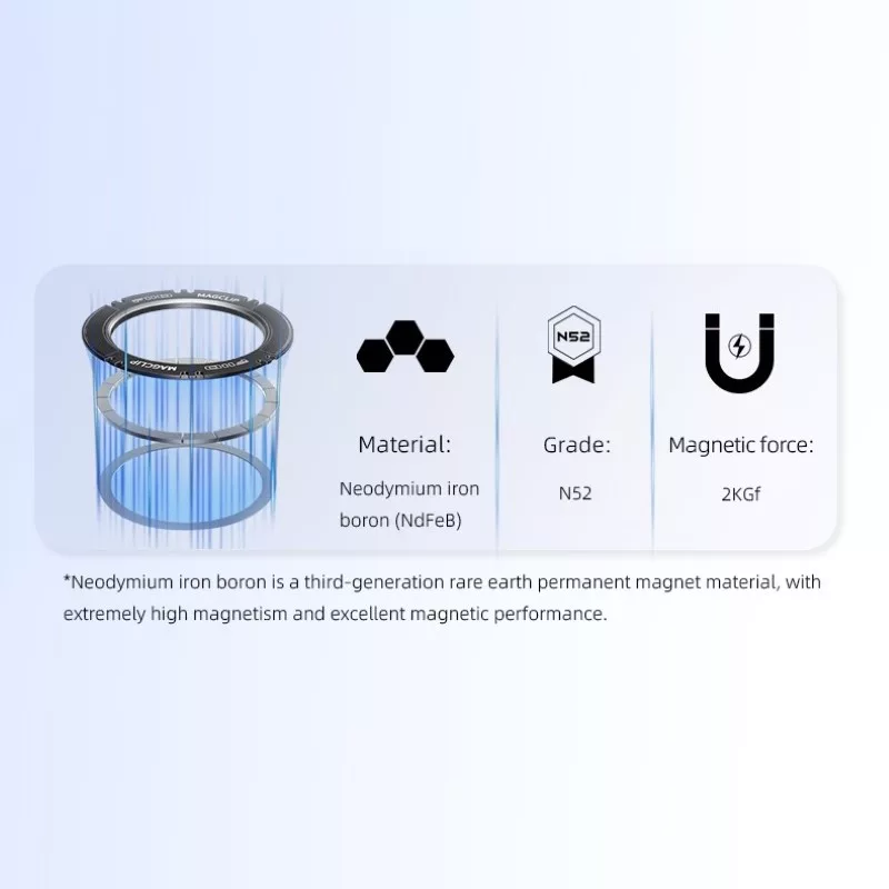 A MagClipben 17 darab extra erős, N52-es besorolású, 3. generációs ritkaföldfélből készült mágnes van.