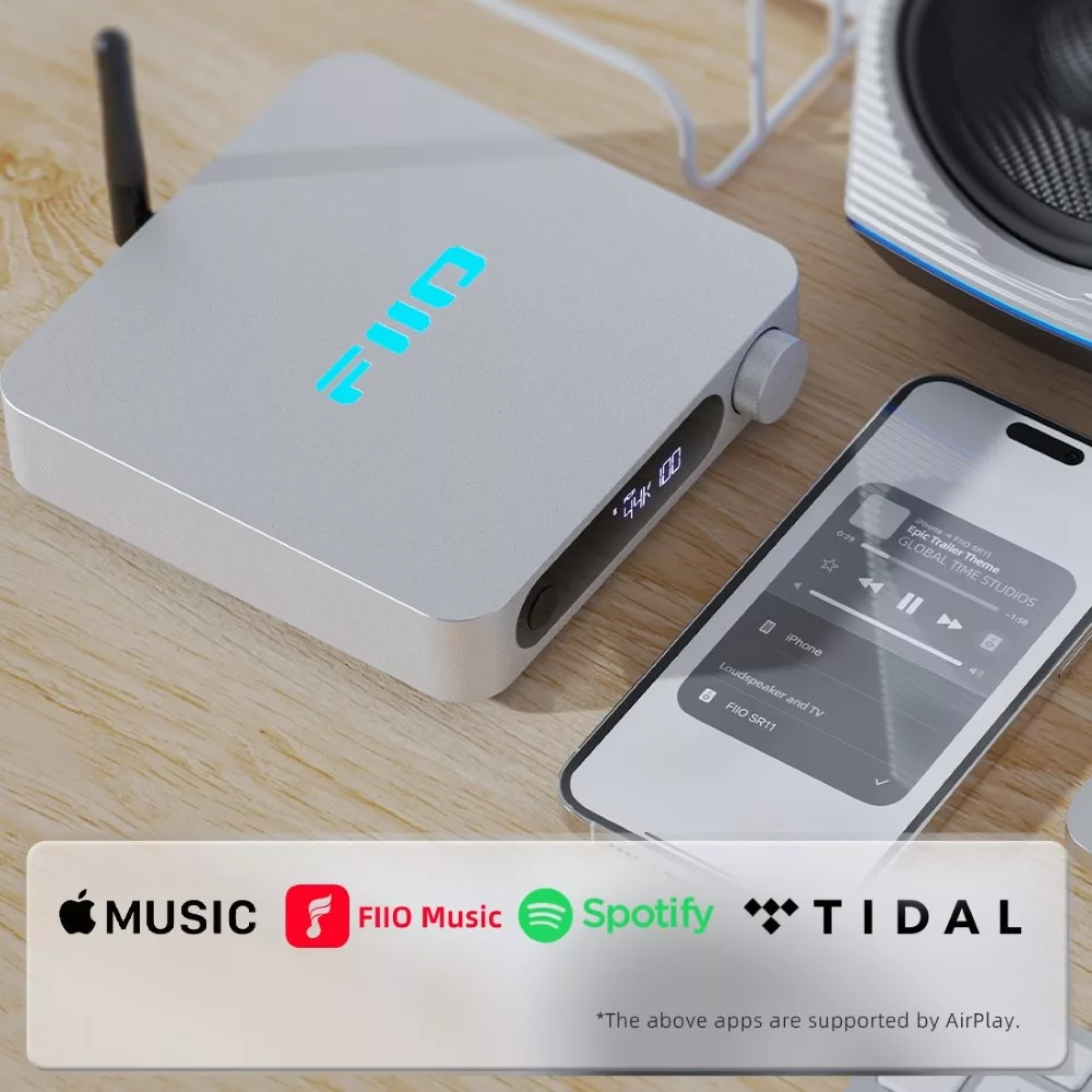 A FiiO SR11 egy nagy teljesítményű, veszteségmentes hálózati zenelejátszó (streamer), amely külső dekóderrel (DAC) párosítva lehetővé teszi egy modern HiFi rendszer egyszerű kialakítását. Támogatja az AirPlay, a Roon Ready és a DLNA protokollokat, így zökkenőmentes hozzáférést biztosít az Apple eszközökön, hálózati tárolókon (NAS) vagy online könyvtárakban tárolt zenékhez. Sokoldalú digitális kimenetei és stabil hálózati kapcsolata révén akár 768 kHz/32 bit és DSD256 felbontású, stúdióminőségű hanganyagok továbbítására is alkalmas.