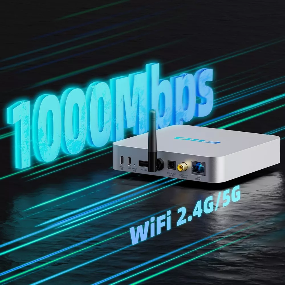 Hálózati stabilitás: Az 1000 Mbps Ethernet port vezetékes, míg az AP6256 modul kétsávos vezeték nélküli kapcsolatot biztosít a veszteségmentes audió átviteléhez.