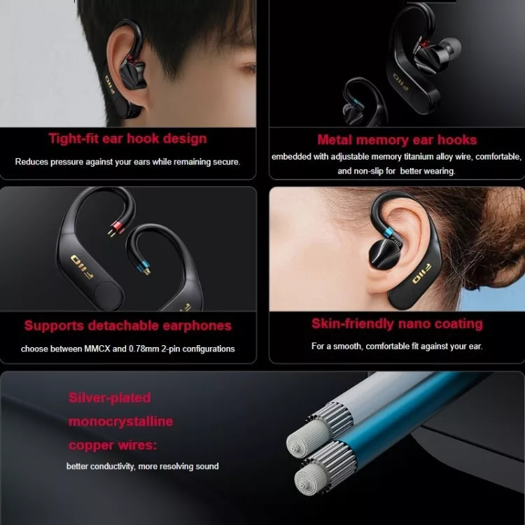 FiiO UTWS5 Bluetooth vevő megszabadít a vezetékektől. 2 pines csatlakozóval ellátott fülhallgatód hangszóróit pattintsd le a vezetékről, majd csatlakoztasd azokat az UTWS5 csatlakozóira!
