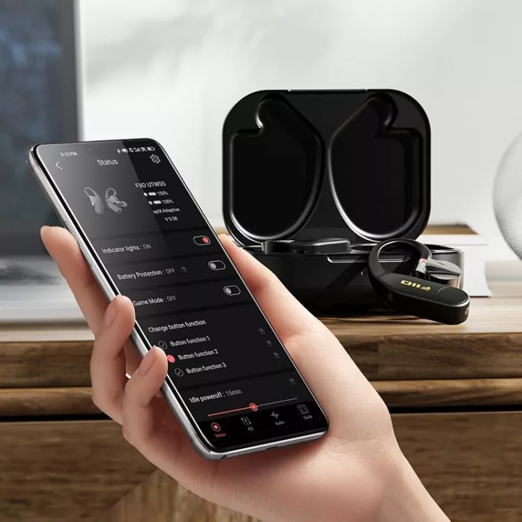 A Google Play és az Apple Store áruházakból töltsd le a FiiO Music és/vagy a FiiO Control appokat! Ezekkel csatlakozhatsz az UTWS5-höz, hogy finomítsd a beállításokat (pl. balansz) vagy firmware-t frissíts.