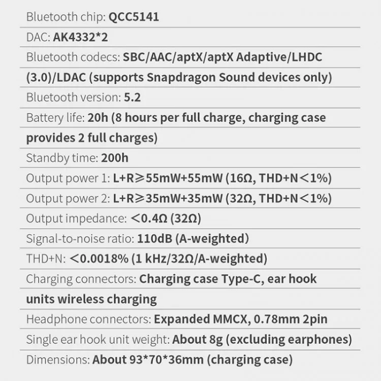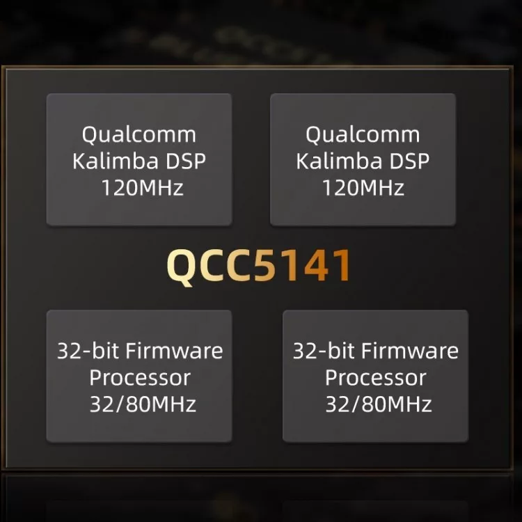 - Qualcomm QCC5141 Bluetooth chip. (v5.2, TWM, AptX Voice)