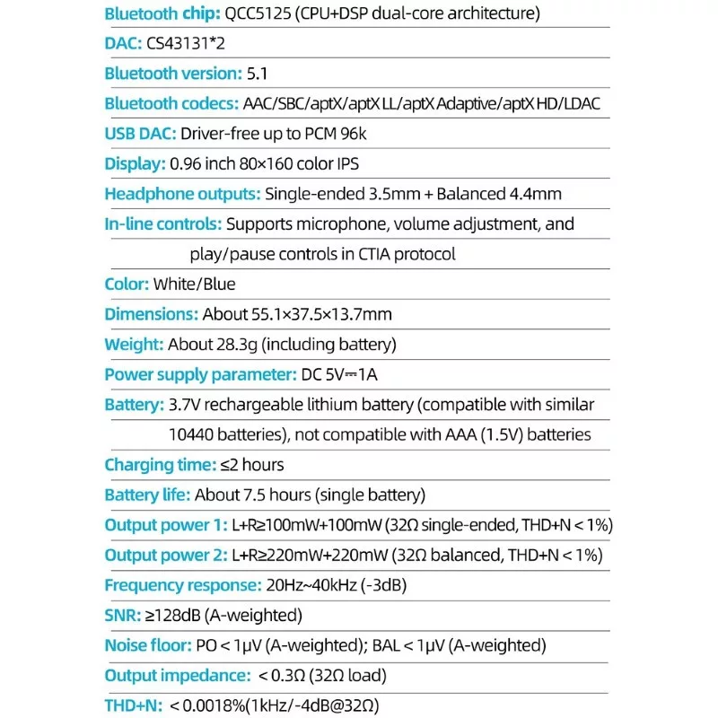 DAC: 2 x CS43131 Bluetooth: QCC5125